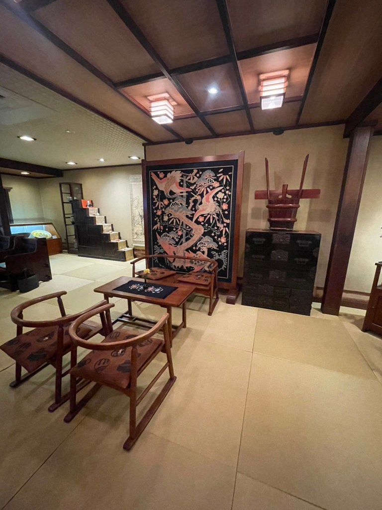 山陰ならではの民藝の器や家具がたくさんあるレトロな空間にまずワクワク。