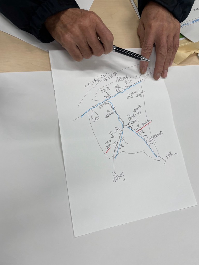今回は、気候危機に関する勉強パートは無し。鳥取環境大学の甲田先生と、留学生の黄さんのガイドで、岩美町での脱炭素の具体化を考える話し合いの時間でした。