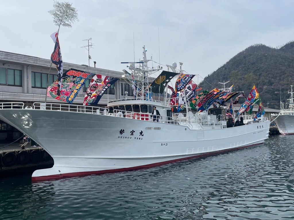 今朝は、いつものように鳥取には向かわず、網代漁港へ。新しくなった勢宝丸のお披露目会です。