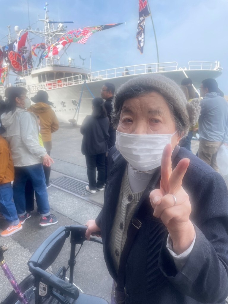 漁港に着くと、「坊守が来た〜」と、声をかけていただき、心細く感じる間もなく、楽しくおしゃべりしながらの見学になりました。