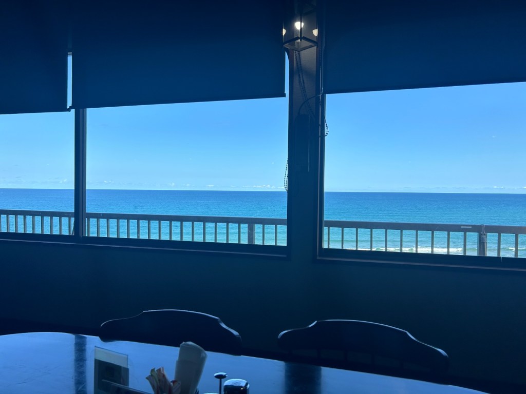 その帰り、山陰道(9号線のバイパス)は通らずに海沿いの9号線を走りました。海の青さがすごいです。脇見運転はいけませんから、龍見台という展望台で休憩です。これまた一度入ってみたかった喫茶店ウェーブでランチです。