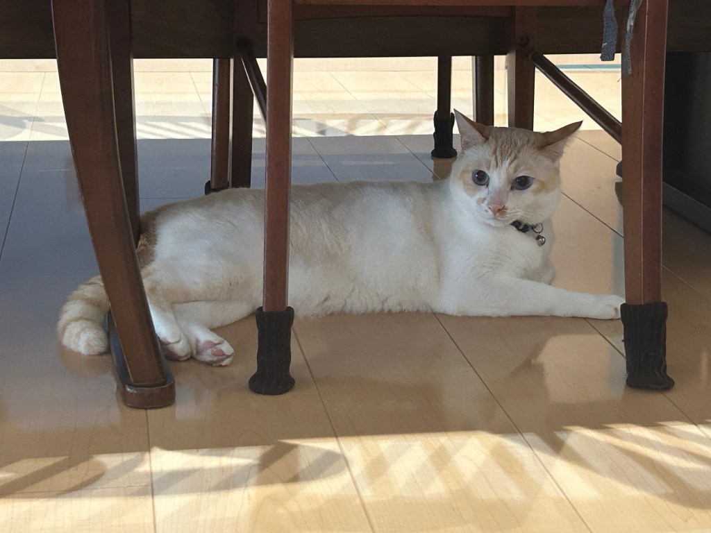 昨日にもまして暑い1日となりました。Tさん宅のネコのハクくんに会うのは2回目です。暑いところを避けて、床にペタッと張り付いて過ごしているそうです。