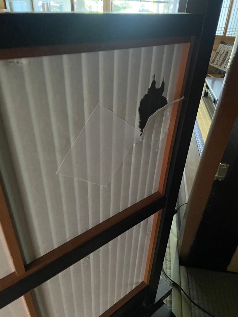 ついたての破れが、容疑者のシルエットになっていて、おかしい
