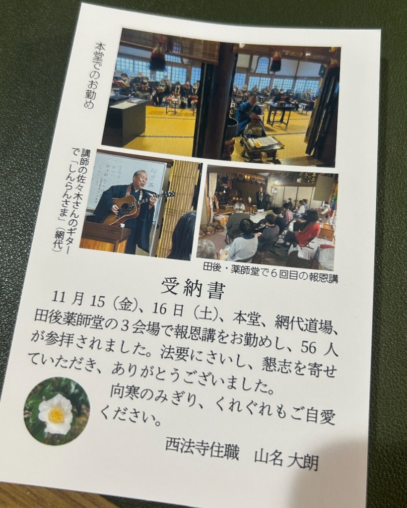 お寺から東に目をやると県境の山々が一望できます。その向こう側が兵庫県です。昨日、兵庫県知事選挙が行われました。県民のみなさんがどんな選択をするのか注目していました。というのも、パワハラの疑いなどで斎藤県知事は告発され、県議会から不信任を決議され、失職して今回の選挙となったからです。