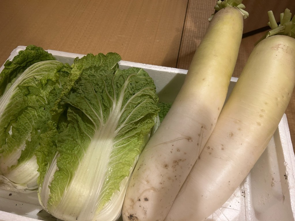 近所のご門徒さんから、「白菜や大根食べんだか?」との電話が。「喜んていただきます」。