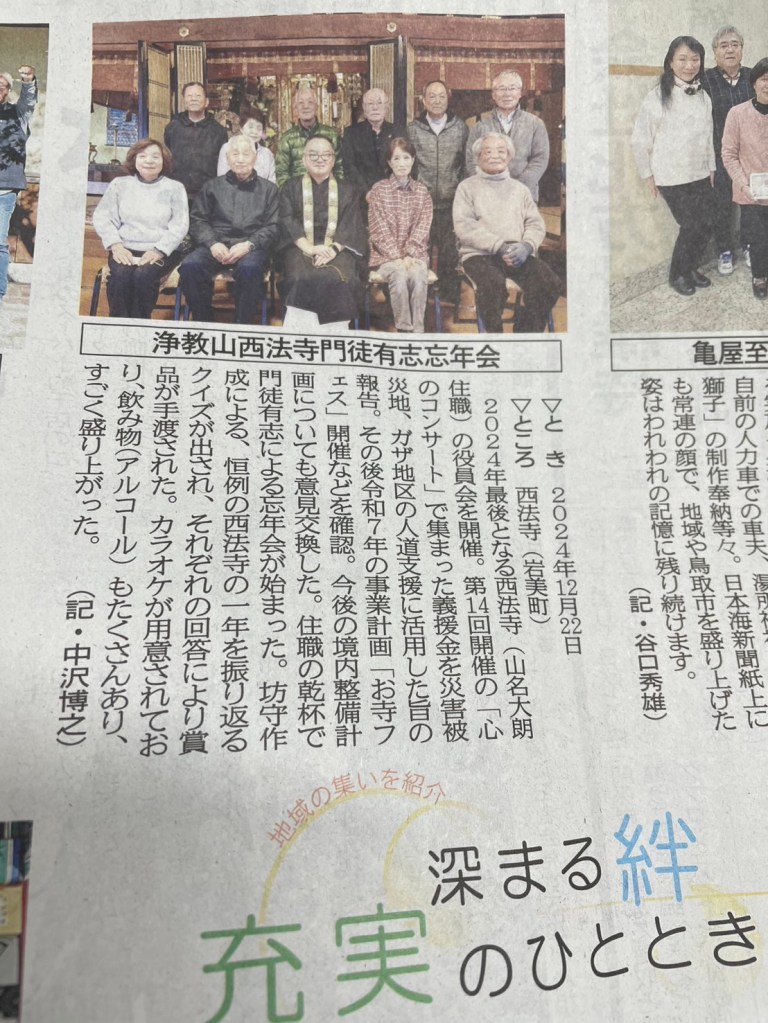 一昨日、地元紙に昨年末のお寺の忘年会のことが紹介されました。記事を送ってくれたのは役員さんです。当日のことがコンパクトにもれなく記されていて感心する住職です。