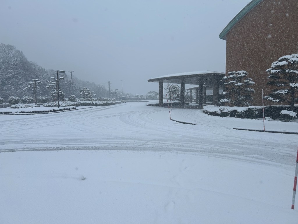 会館の方の話通り、雪は市内の方がつよく、積雪も。小高いところにある火葬場はこの通りでした。道路にも所々、雪が積もっています。