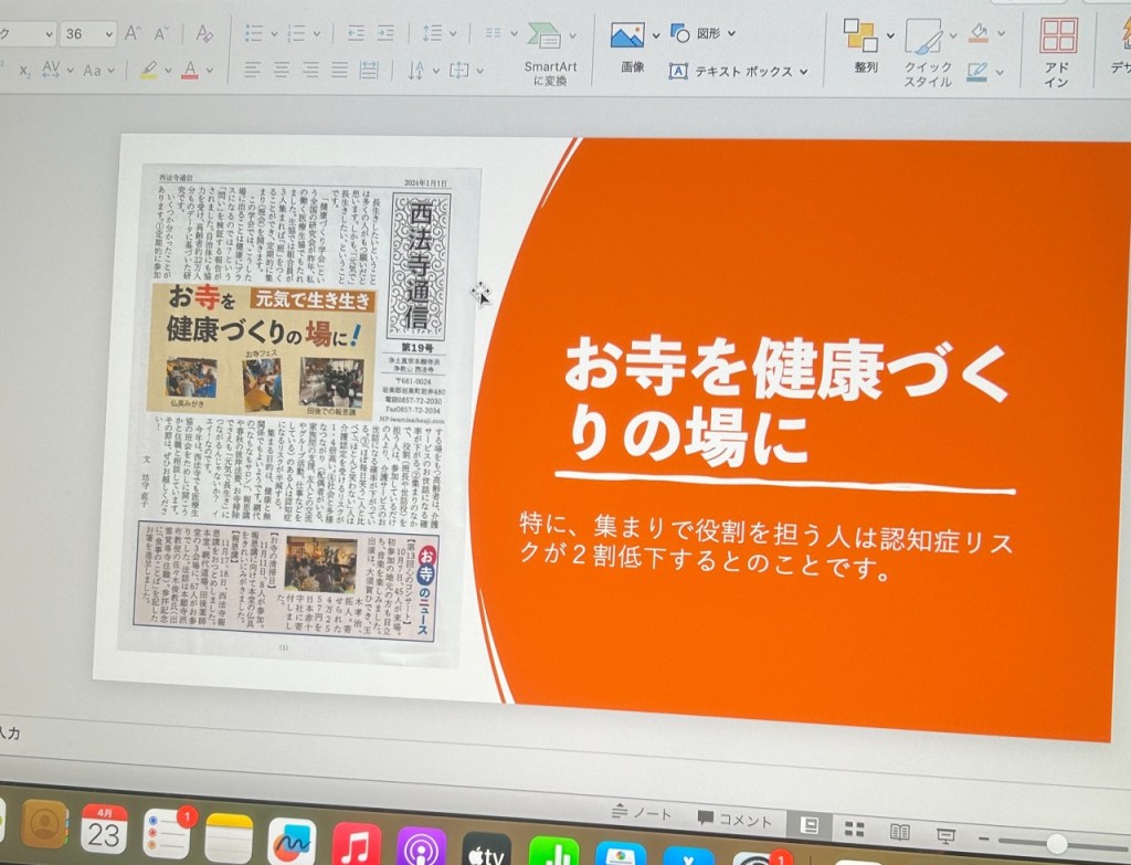 高齢化とそれに伴う孤立・孤独がひろがるいま、医療生協が重視している「つながる」「集まる」ことの効果は絶大です。お寺でも医療生協の班会を月一回開いていますが、みなさん生き生きと参加されています。