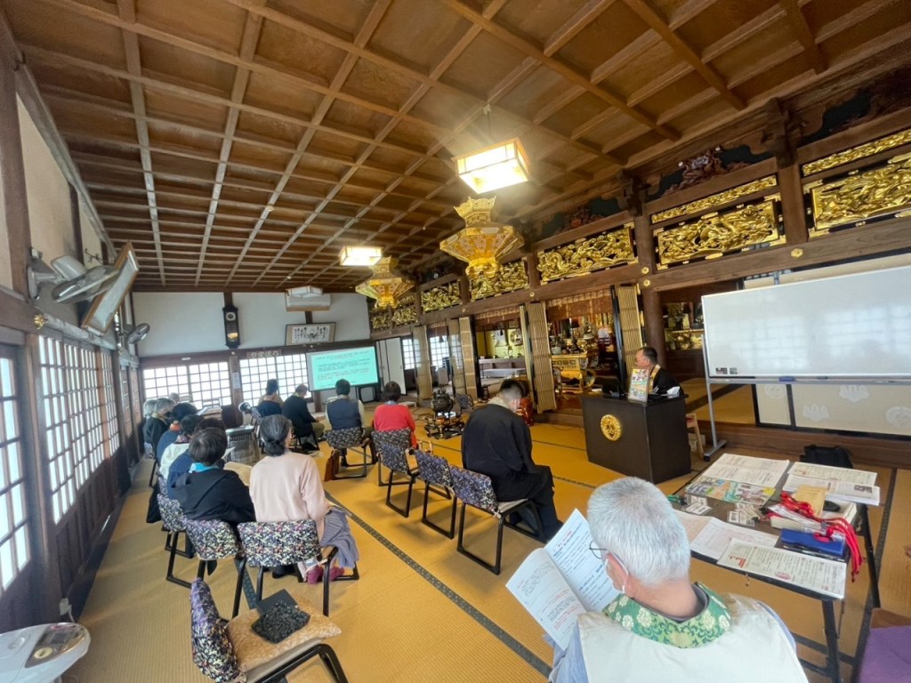 法要が終わり、医療生協の集まりへ遅れて参加です。報告者は坊守でした。同じテーブルの方が、「わかりやすい話をされるなあ」と関心されていましたよ。