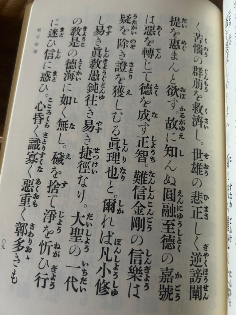 そして今日の朝。いつものように経本を開いたのですが、たまには親鸞聖人が記した『教行信証』を読んでみるかなと手に取って読み始めました。