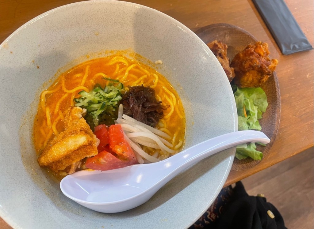 なんとまだメニューにない「冷やし印度」ができますよ、とおすすめが。唐揚げとともにいただきました。スパイシーなのに冷麺。不思議な食べ物です。