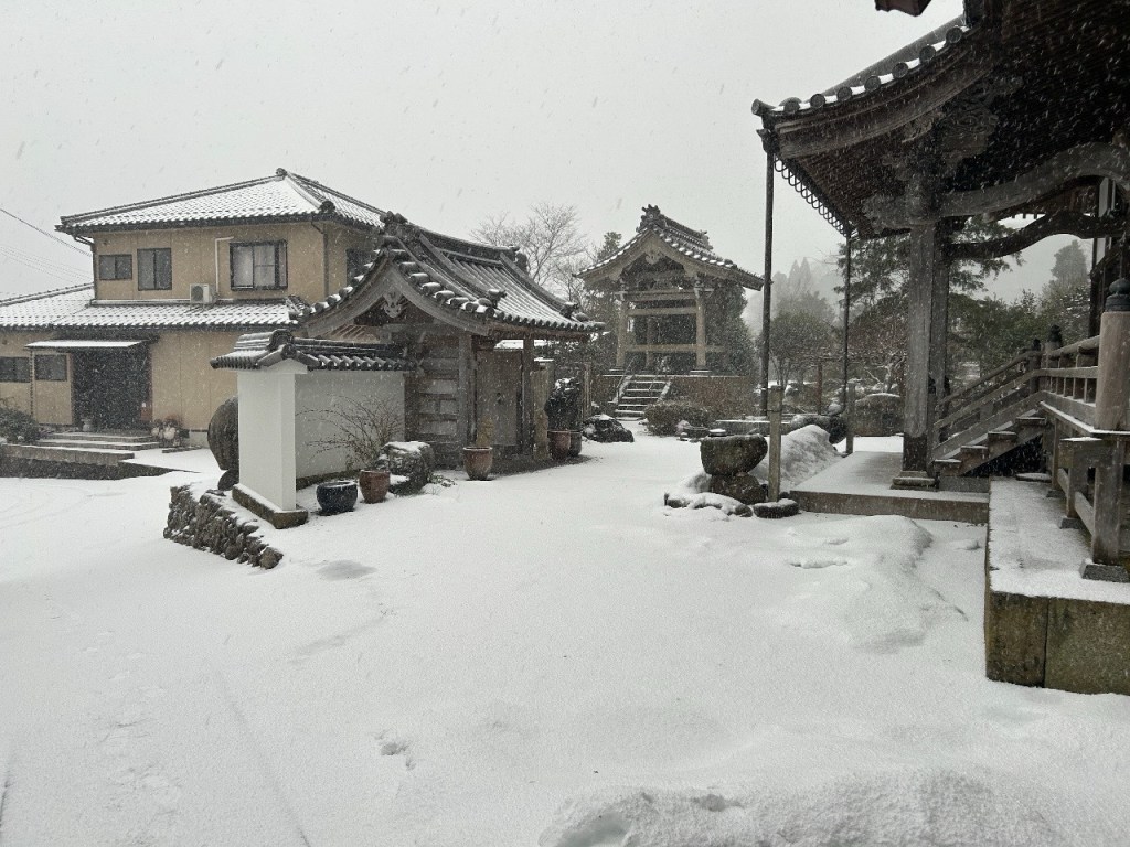 朝から明日のお通夜の準備です。外はというと、午前9時ごろから吹雪です。サラサラとした軽い雪であっという間に積もっていきます。大雪にならないか心配です。雪道の運転くれぐれもご注意を。