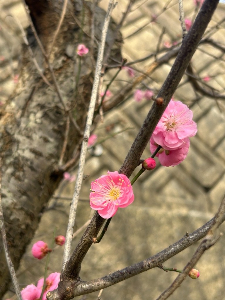 すでに梅が開花していました。うちの庭の梅はまだ硬いつぼみですから、ずいぶん早いです。