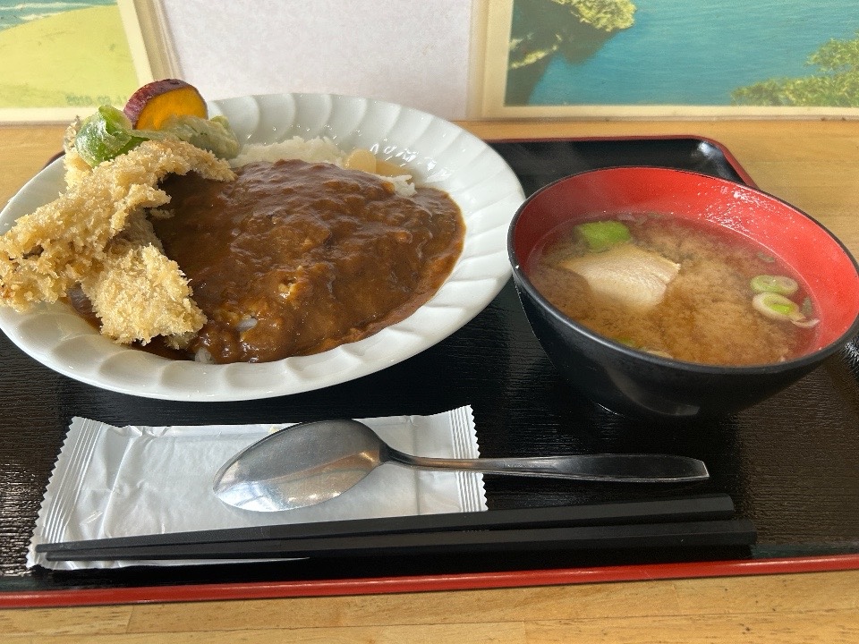 せっかく網代にきたので漁業婦人部の店なだばたさんへ。メニューのボードには記されていないカレーを注文。キスとハタハタのフライがトッピングされたかれーです。カレーにもあら汁がついてきます。こちらがまた美味なのです。美味しくいただきました。