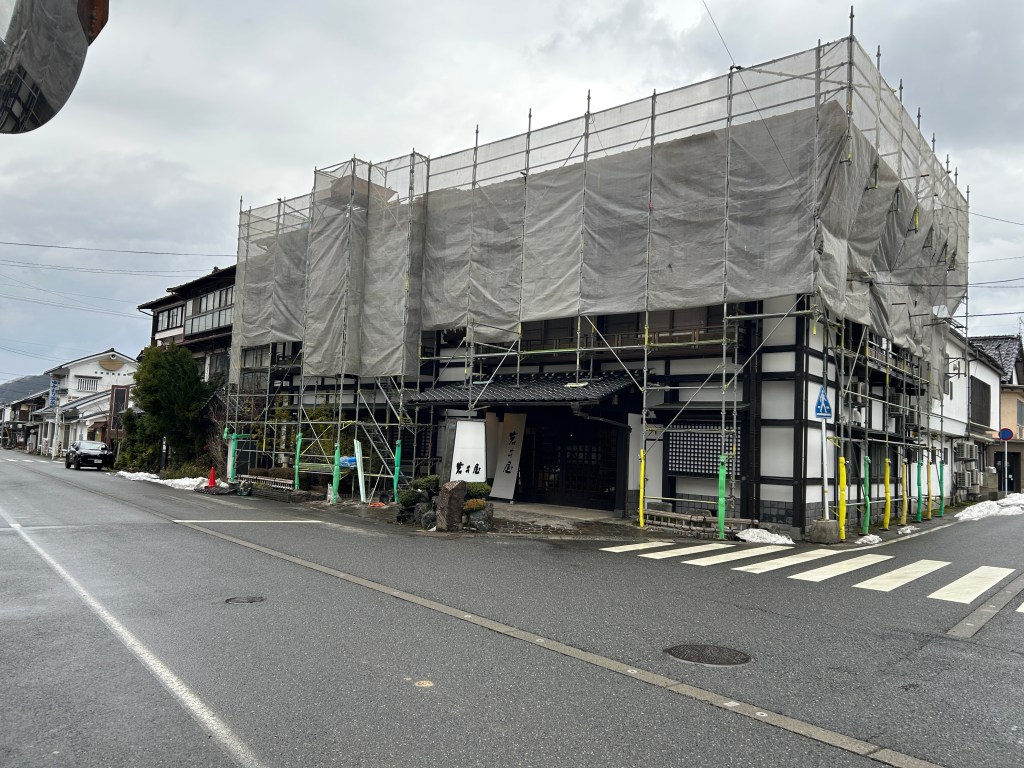 今日は昨日とうってかわって冷たい雨が降っています。地元の温泉旅館・岩井屋さんの外壁なのでしょうか、修繕工事が始まり、今日はクレーン車も稼働していました。組まれた足場の上から手を振る人あり。古屋のリフォーム、お寺の鐘撞堂の修繕などお世話になっている大工さんでした。私は高所恐怖症なので、高いところはまるでいけません。高いところが平気な方は、それだけで尊敬に値します。