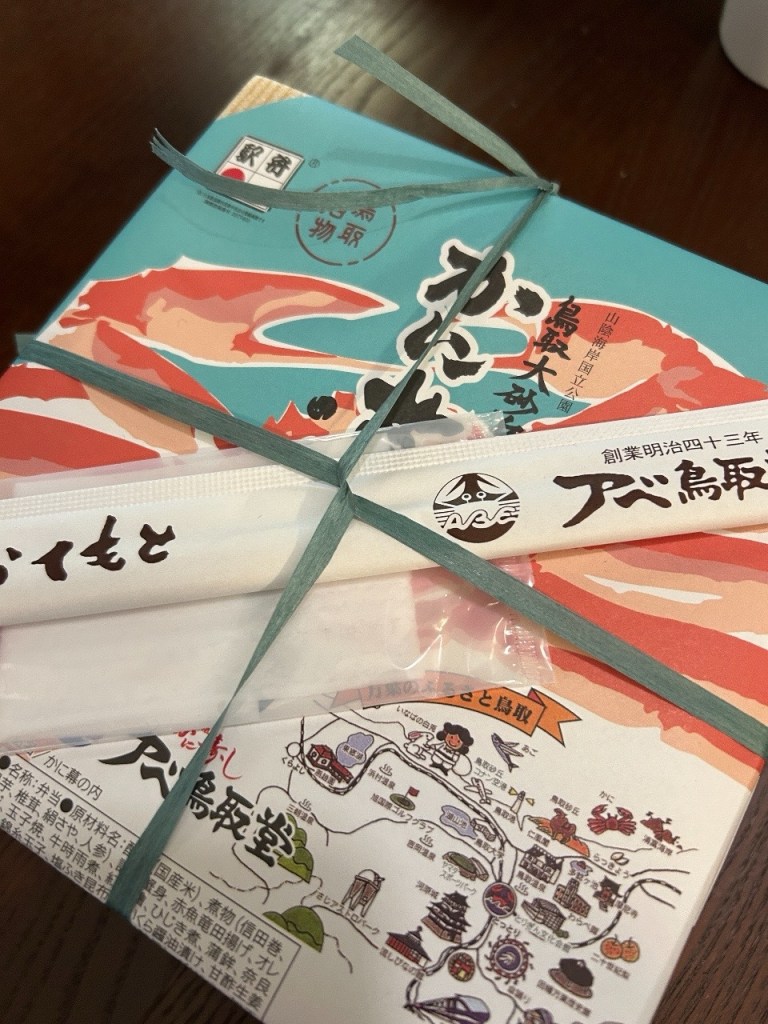 「お昼にどうぞ」とアベ鳥取堂の「元祖カニ寿司」をいただきました。