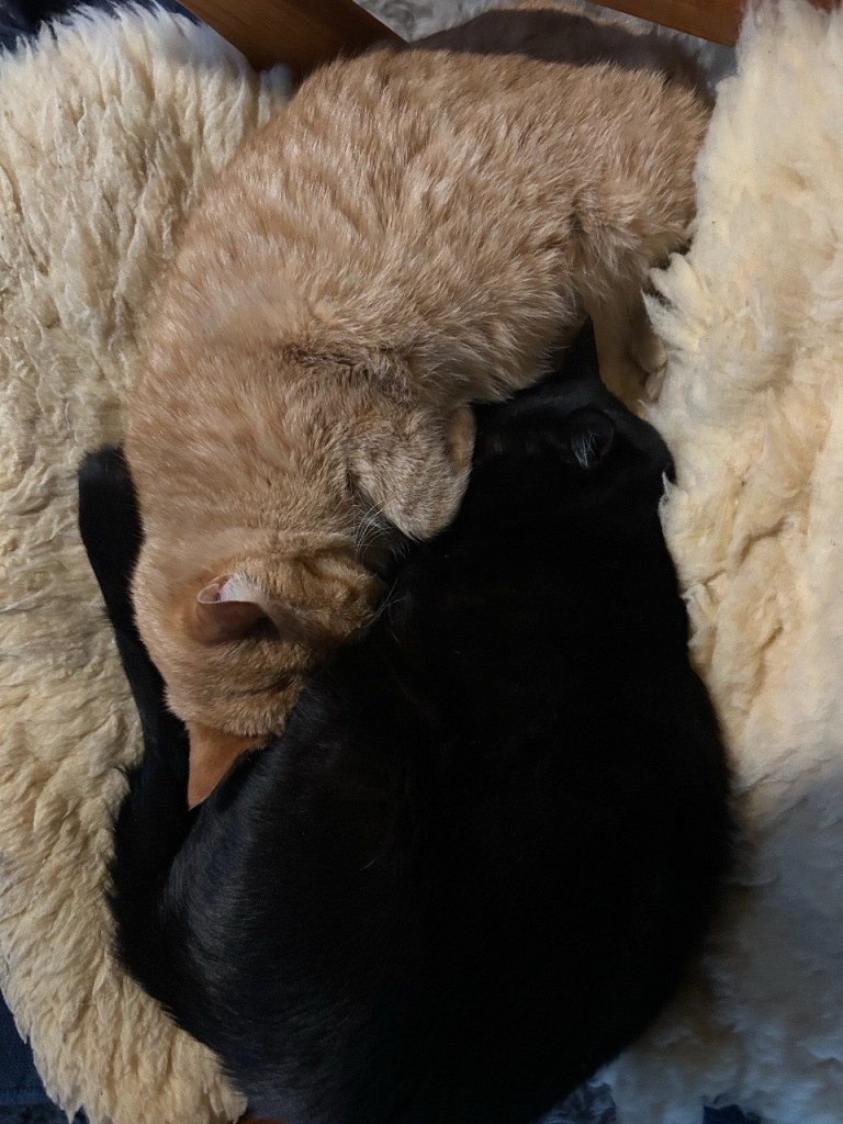 今日は肌寒い1日となりましたね。お昼にかえるとクウとター坊は丸まって寝ていました。毎日飽きることなくプロレスを繰り返している2匹ですが、寝る時はこうして身を寄せ合っていることも珍しくないのです。