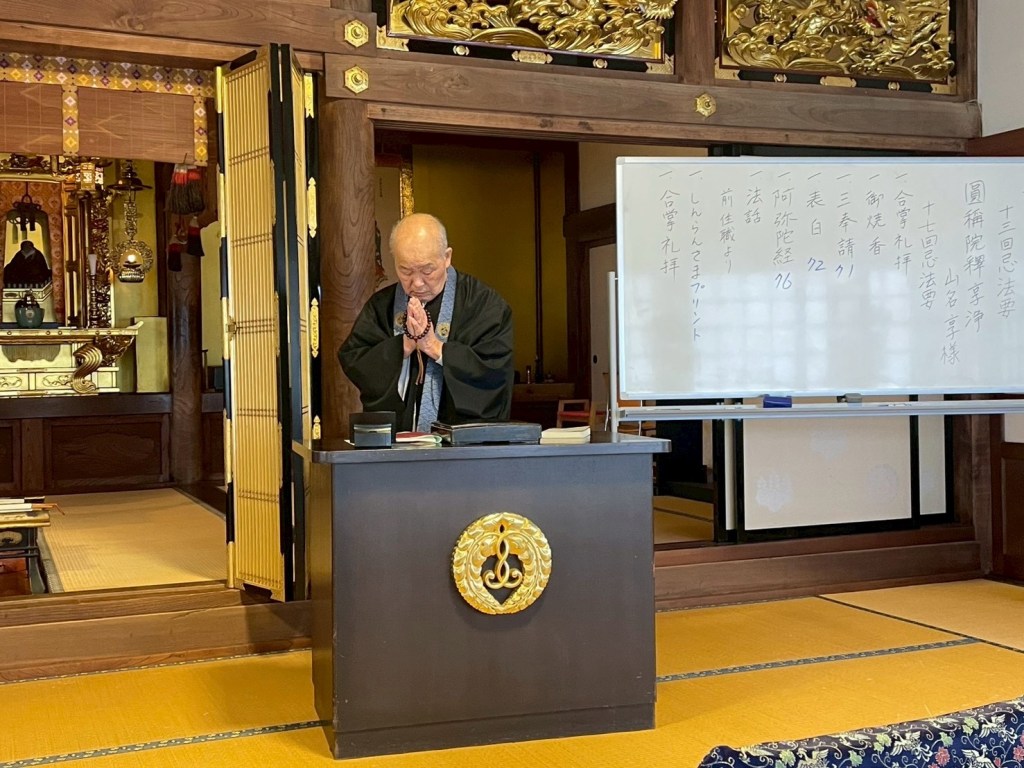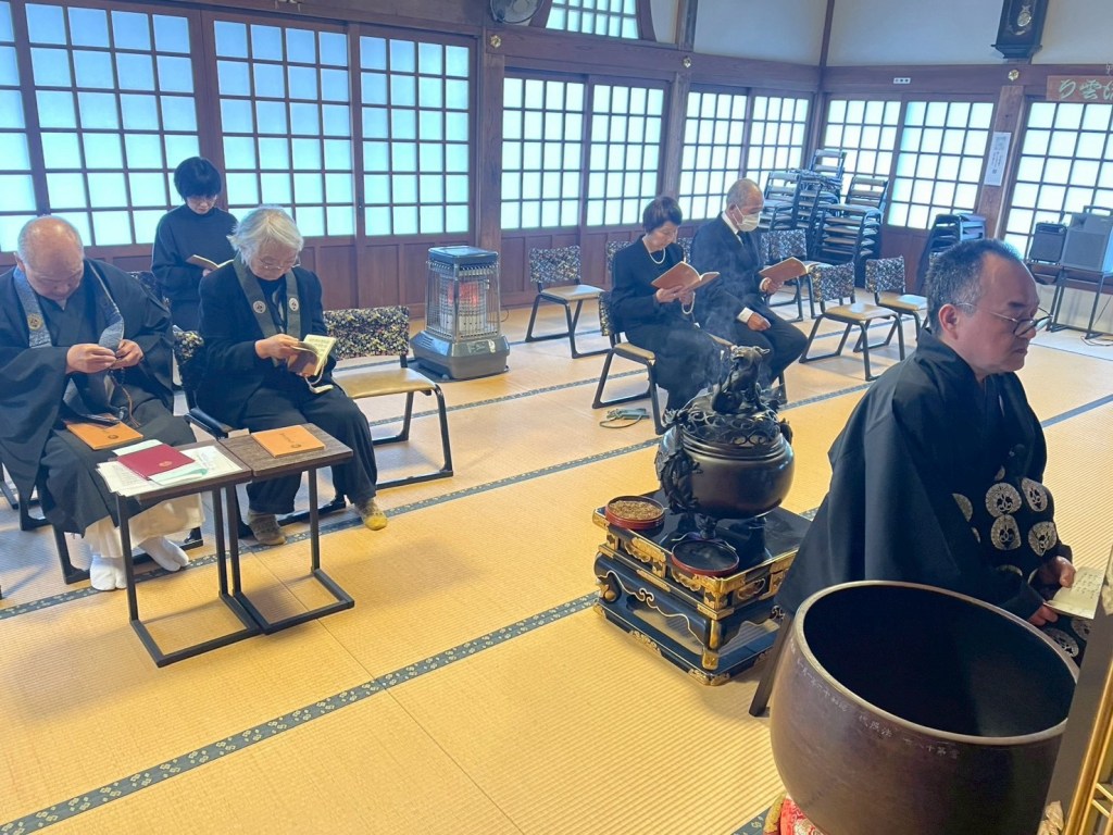 昨夜から東京のかずえ叔母も、お参りのために帰鳥しました。焼香ののち阿弥陀経を読んで、法話に立ったのは前住職。