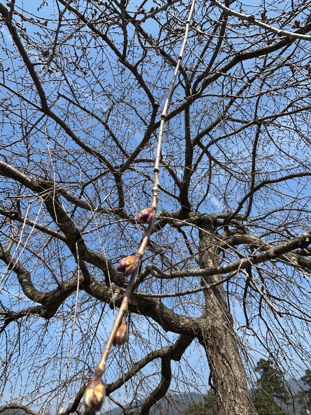朝からいい天気です。境内でも岩井周辺の林でもウグイスが鳴いています。いよいよ春らしくなってきました。境内の枝垂れ桜も、つぼみかふくらんできたので、週末から週明けに開花するかもしれないですね。4月の初旬にはこの桜と、そして納骨堂前の桜が満開となるでしょう。季節はめぐるです。