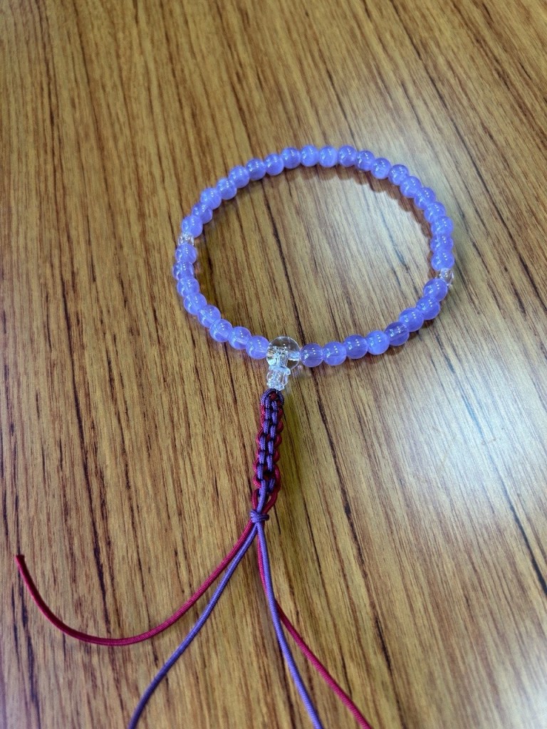 午後は網代道場でおつとめです。その前から、待ってられないと念珠編みを開始。覚えている方がそれぞれ講師になって、みなさん自分の好みの色の念珠を手に。今年も京都の法衣店さんに半ば完成品までつくっていただきました。