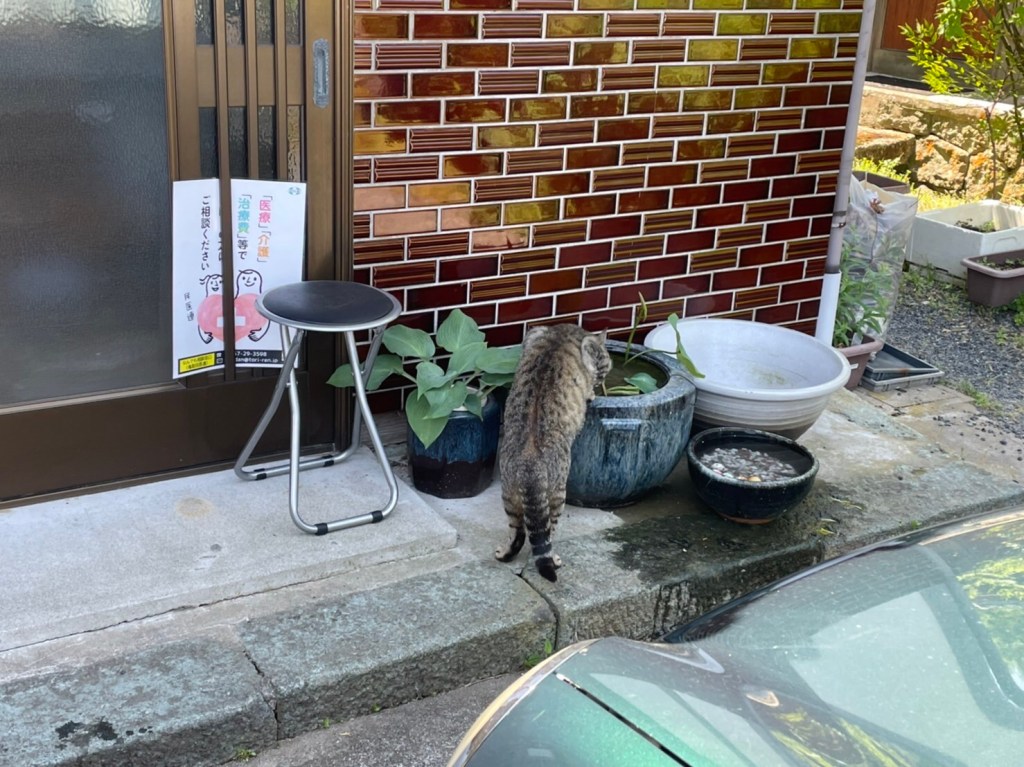 おそとのねこのシマちゃんは、おてんきがわるいと、あそびにこなくなるので「シマちゃんはげんきかなあ」「おなかをへらしていないかなあ」と、おばたんと、おそとをみながらしんぱいしています。